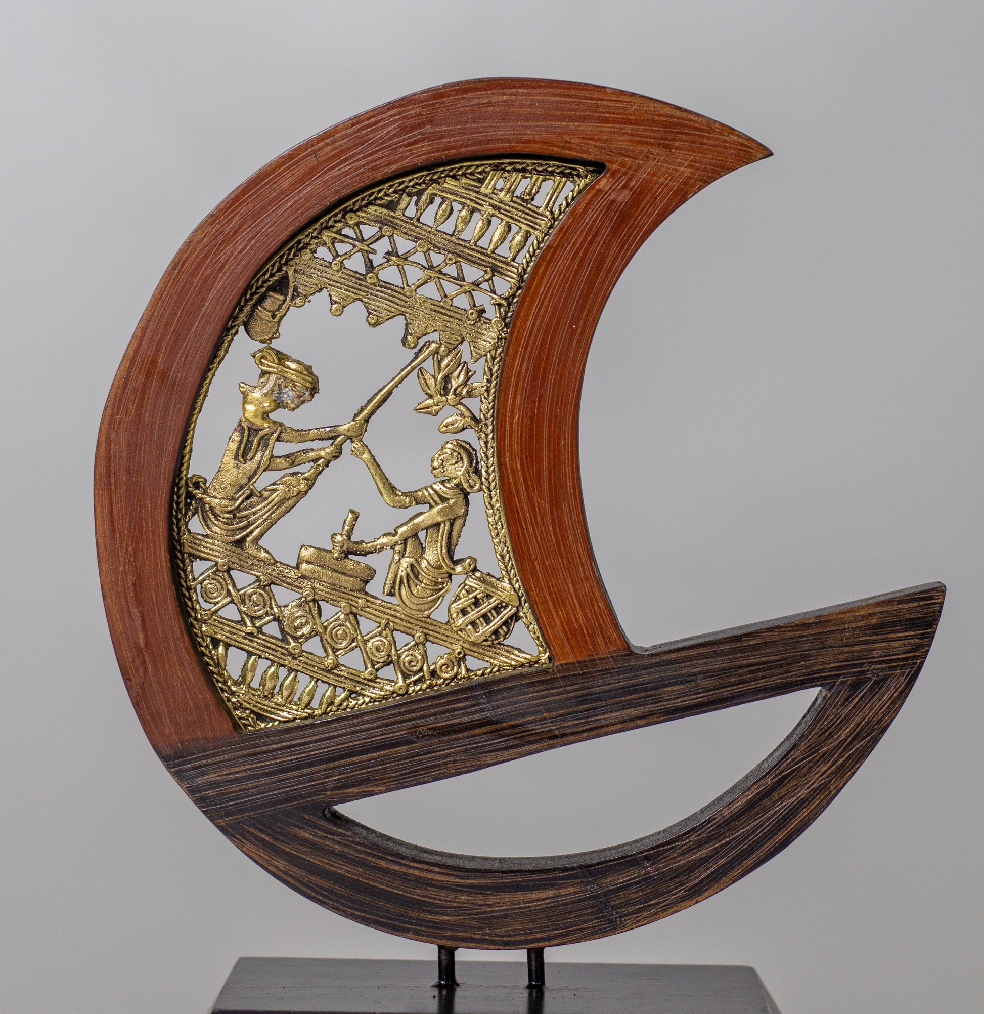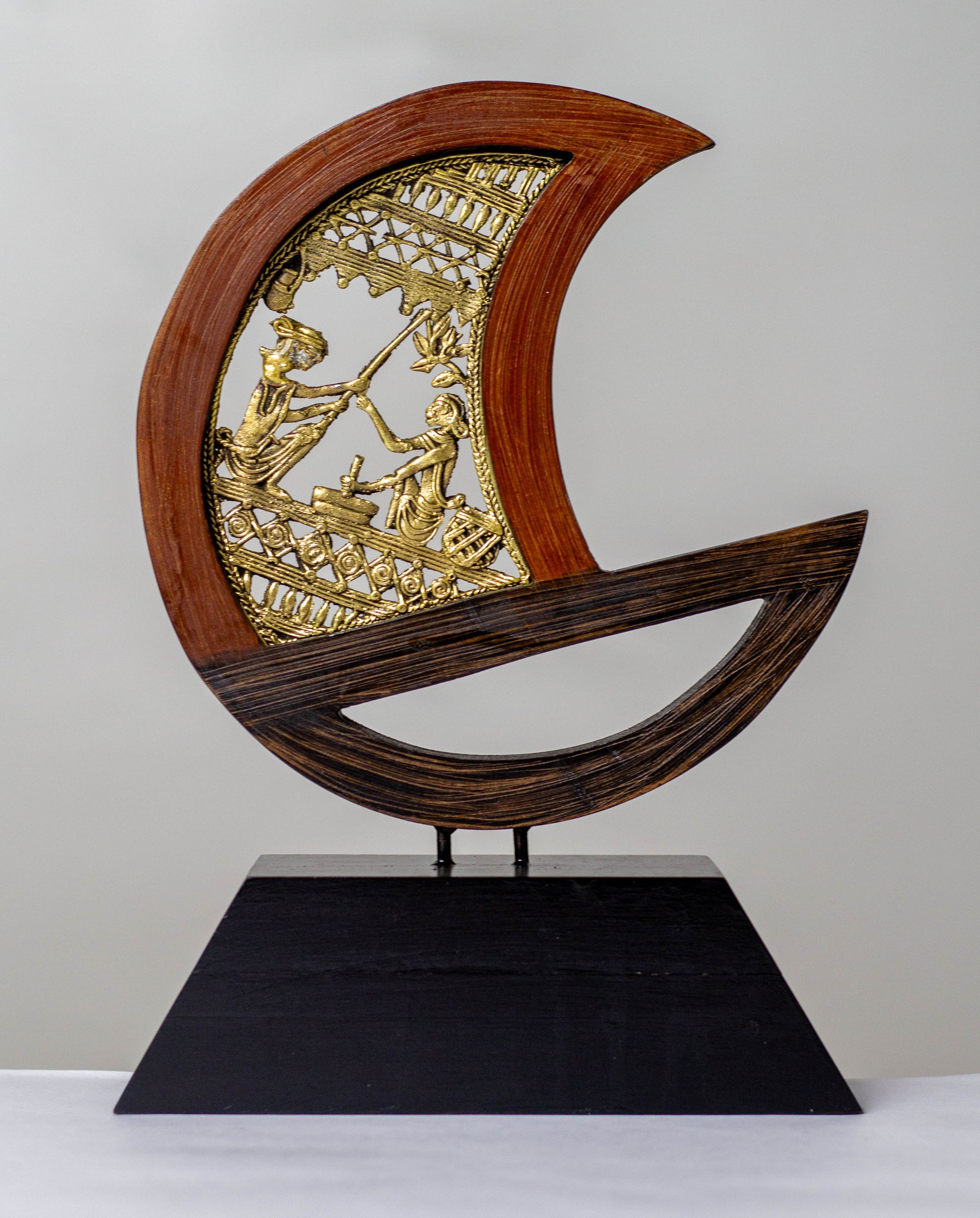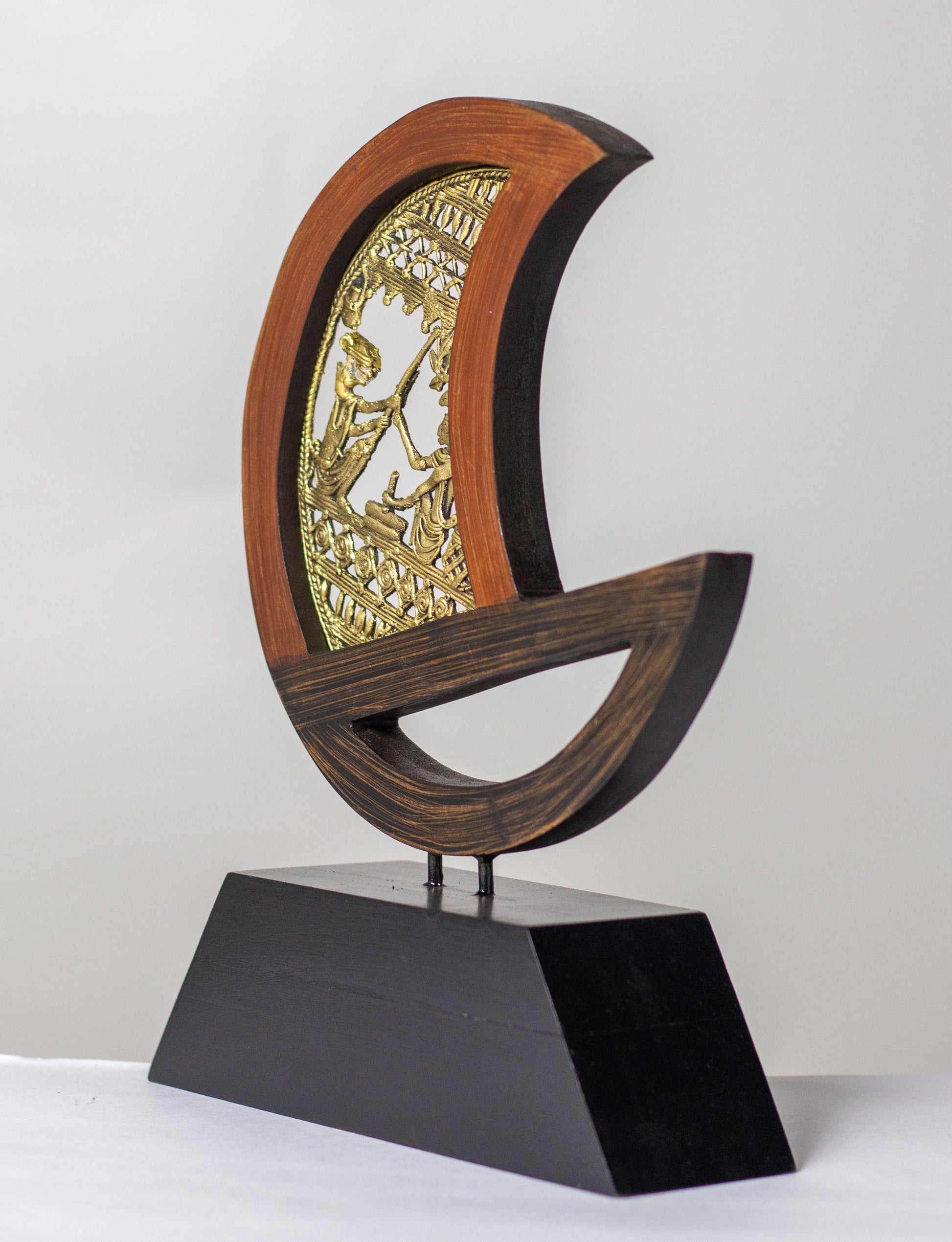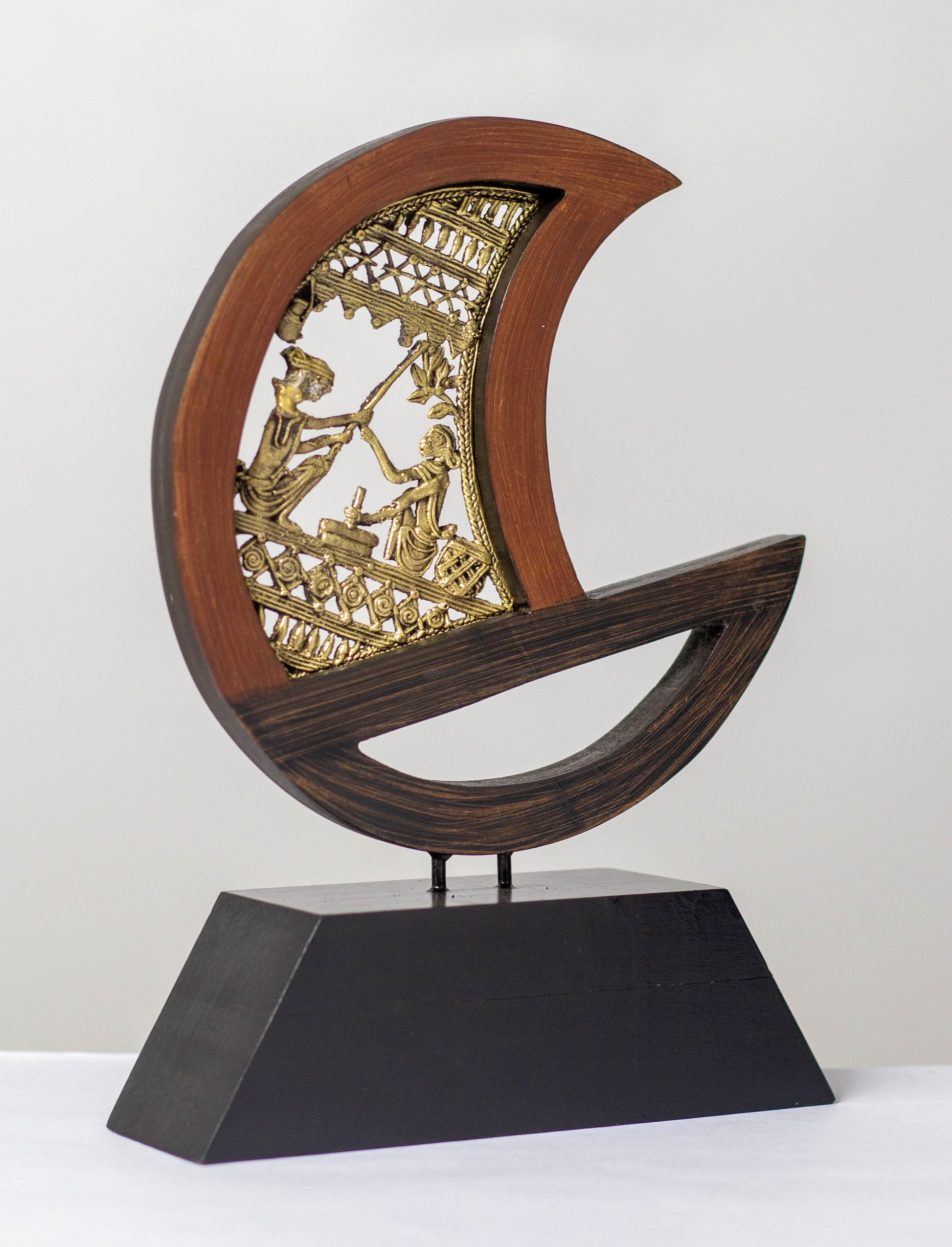 Materials: Solid brass (Dhokra work) and premium hardwood base