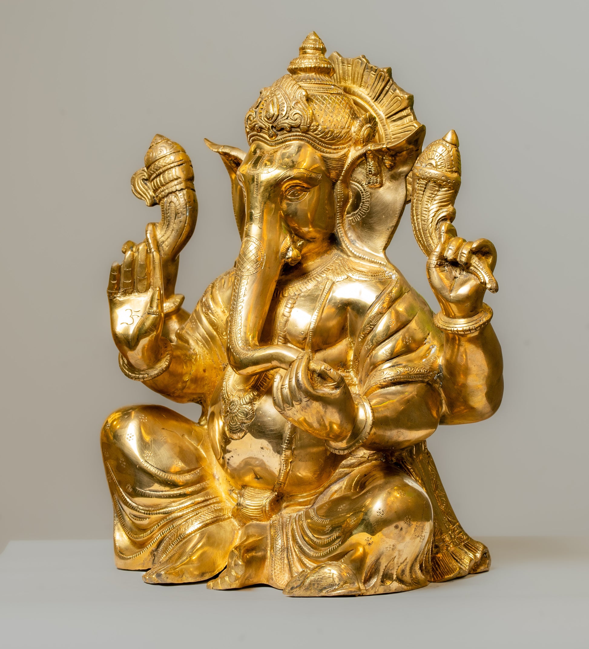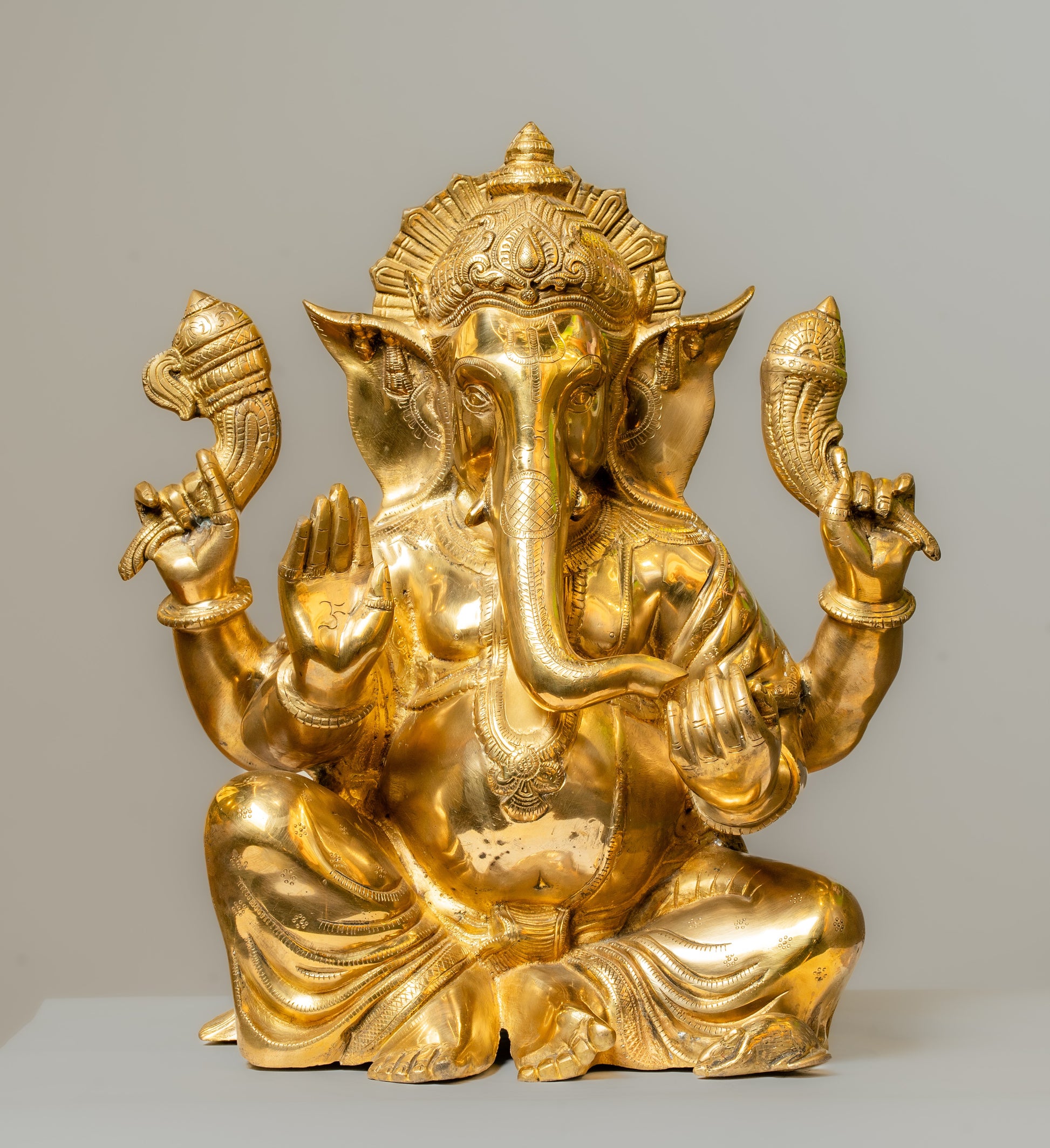 "Lustrous Gold-Finish Brass Ganesha Statue"